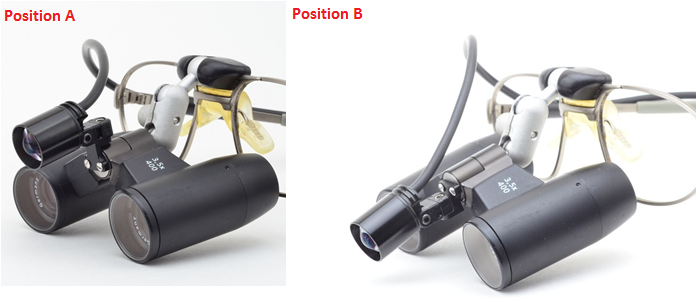 B) Using provided screws, attach the bracket to the two screw holes on loupes.